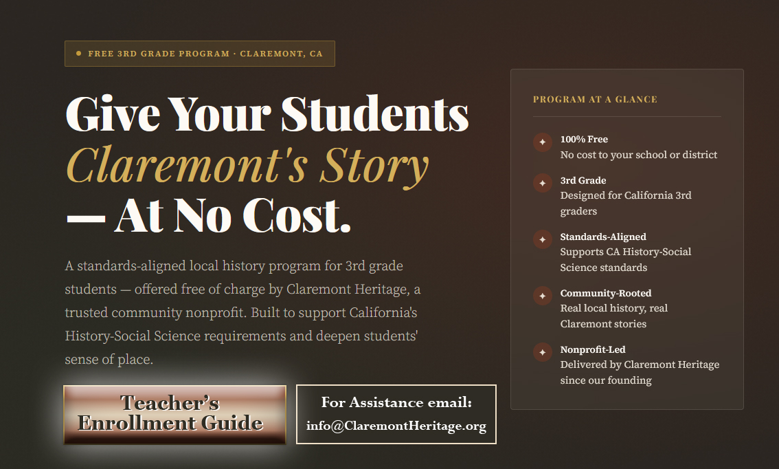 offered free of charge by Claremont Heritage, a trusted community nonprofit.